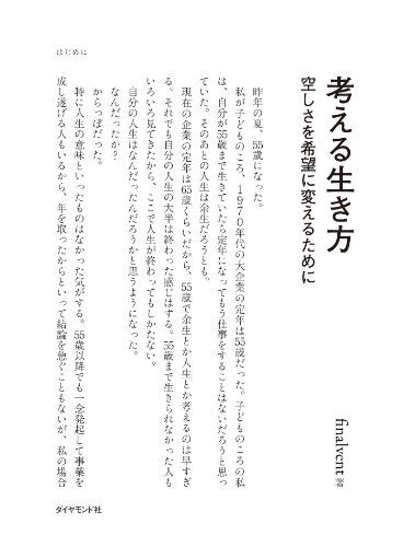 『考える生き方 空しさを希望に変えるために』(著:finalvent)を読み終える。 考える生き方 作者:finalvent ダイヤモンド社 Amazon アマゾンでオススメされて、表紙が印象的だったので買ってみた。 著者名に見覚えがあるなと思ったら、ブログ界隈でかなり…