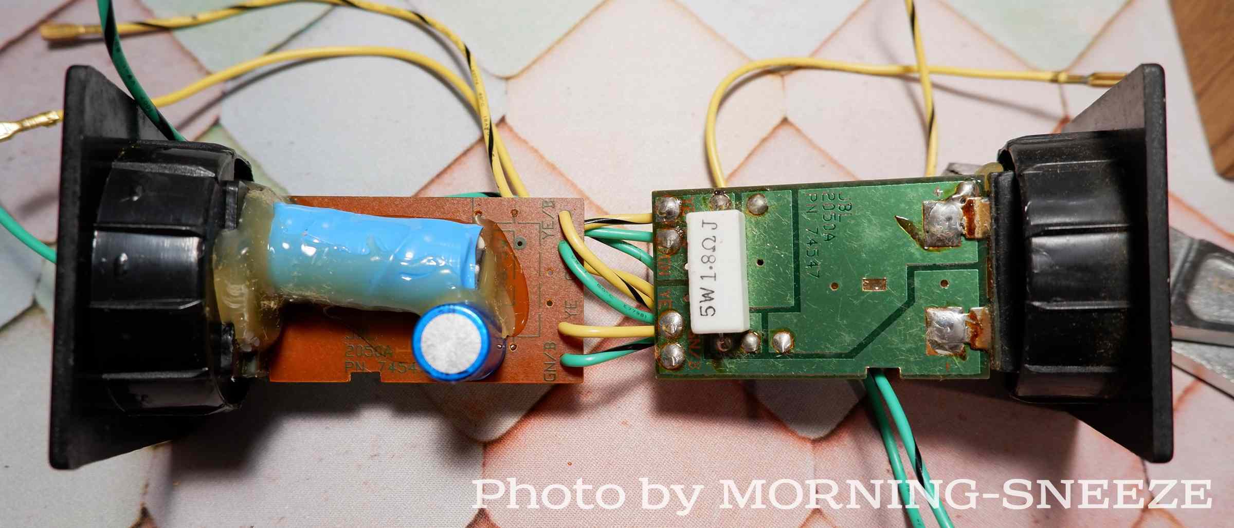 抵抗器もセメント製から酸化金属皮膜抵抗に変更する。こちらは、コンデンサーの変更に合わせて、1.8Ωから2.0Ωに微増する。容量変更が微小なので音質的な影響も微々たるものだろうけど、一応。