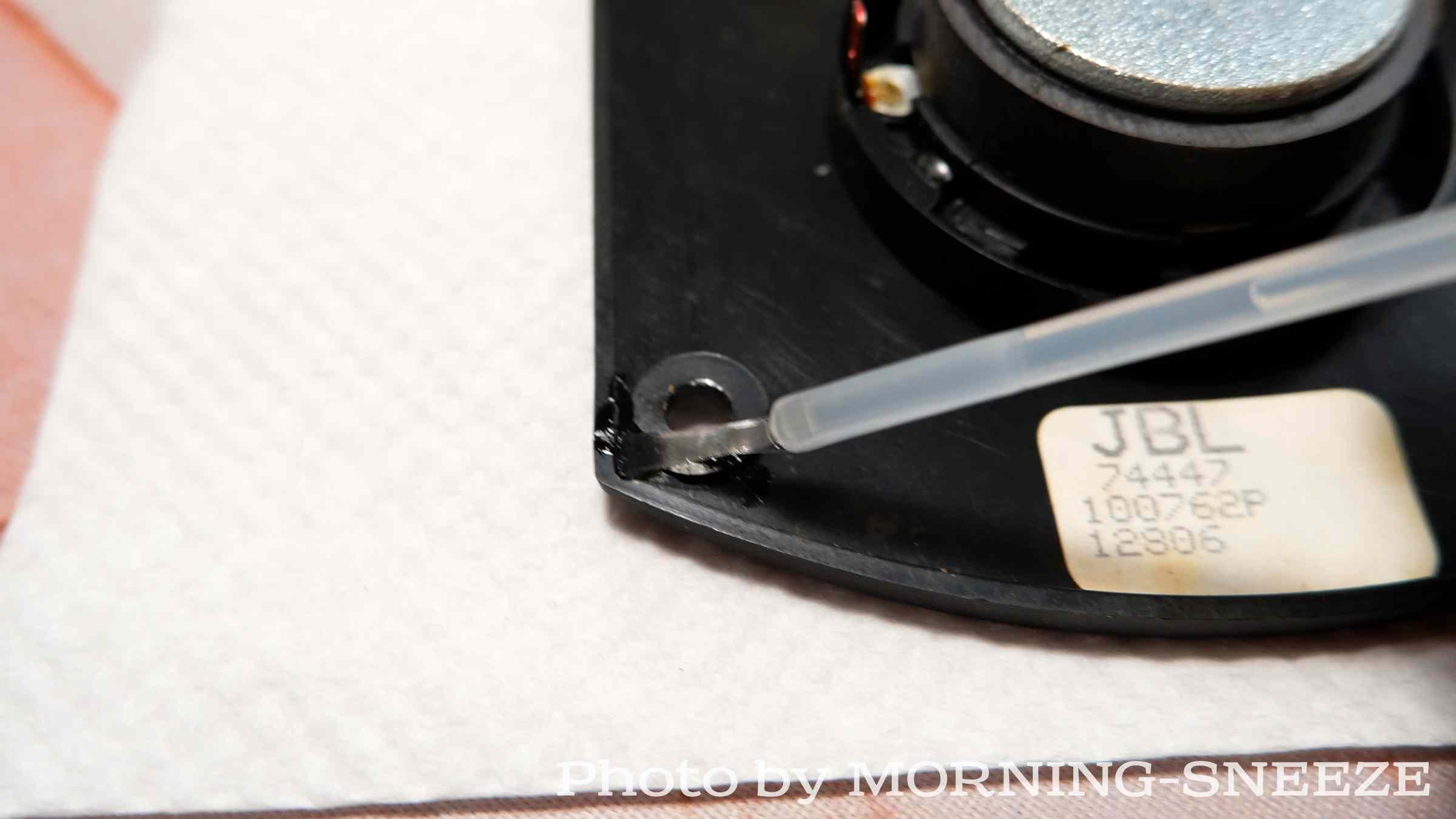 このスピーカーのツイーターには、「J216 PRO」でも見られた樹脂プレートのクラックが発生していた。材質が同じのようだ。