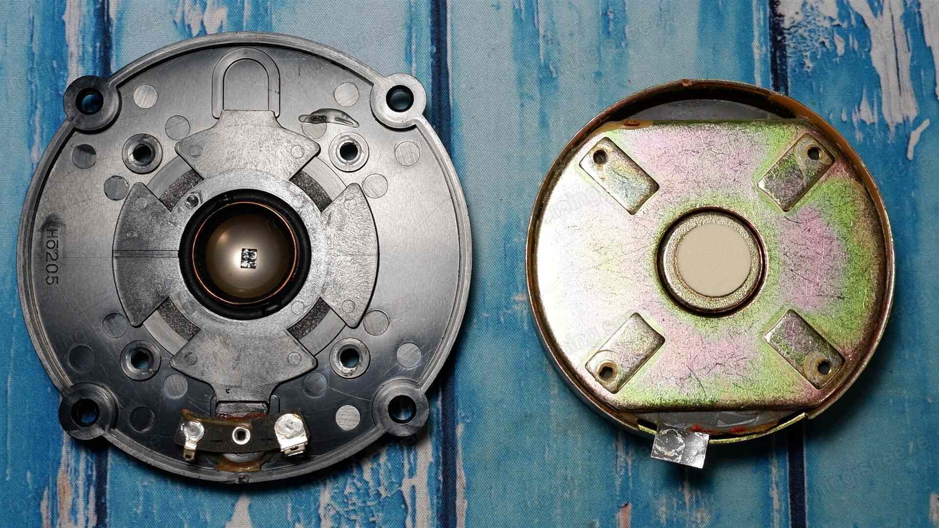 ツイーターのほうは、大きめのマグネットを背負っていて、手に持つとズッシリ重たい。磁気回路はかなり強力そうだ。