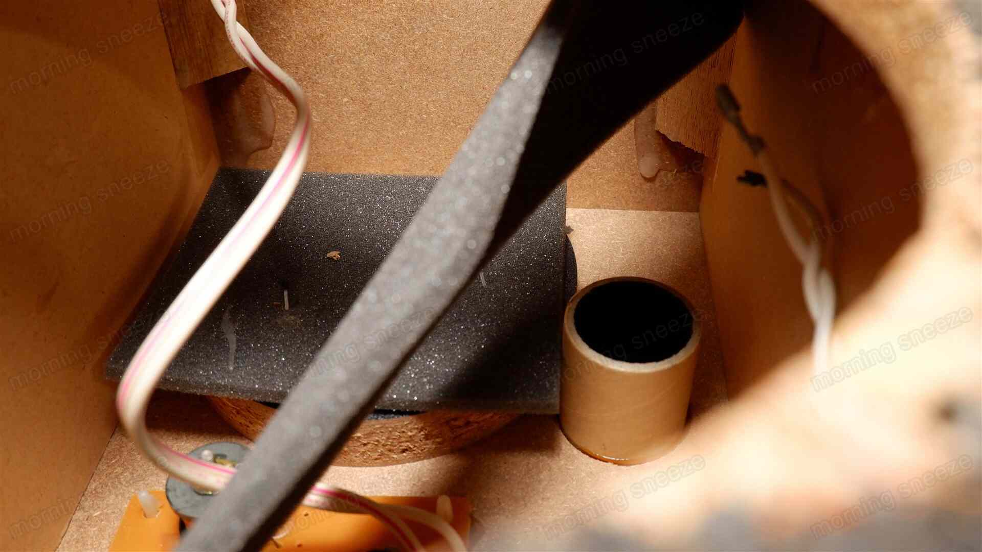 それが、バスレフポートの静粛化と吸音材の増加によって、ある程度深みを持つ形で改善した。効果てき面とわかったので、ほかになにも弄らずともこの二か所の調整だけは最低限行っておくほうがよいだろう。