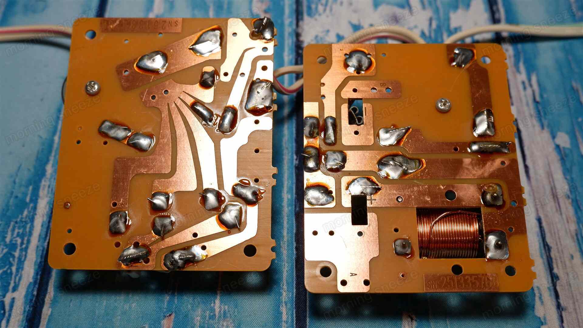 コイルと抵抗器は基板から取り外し、再利用する。