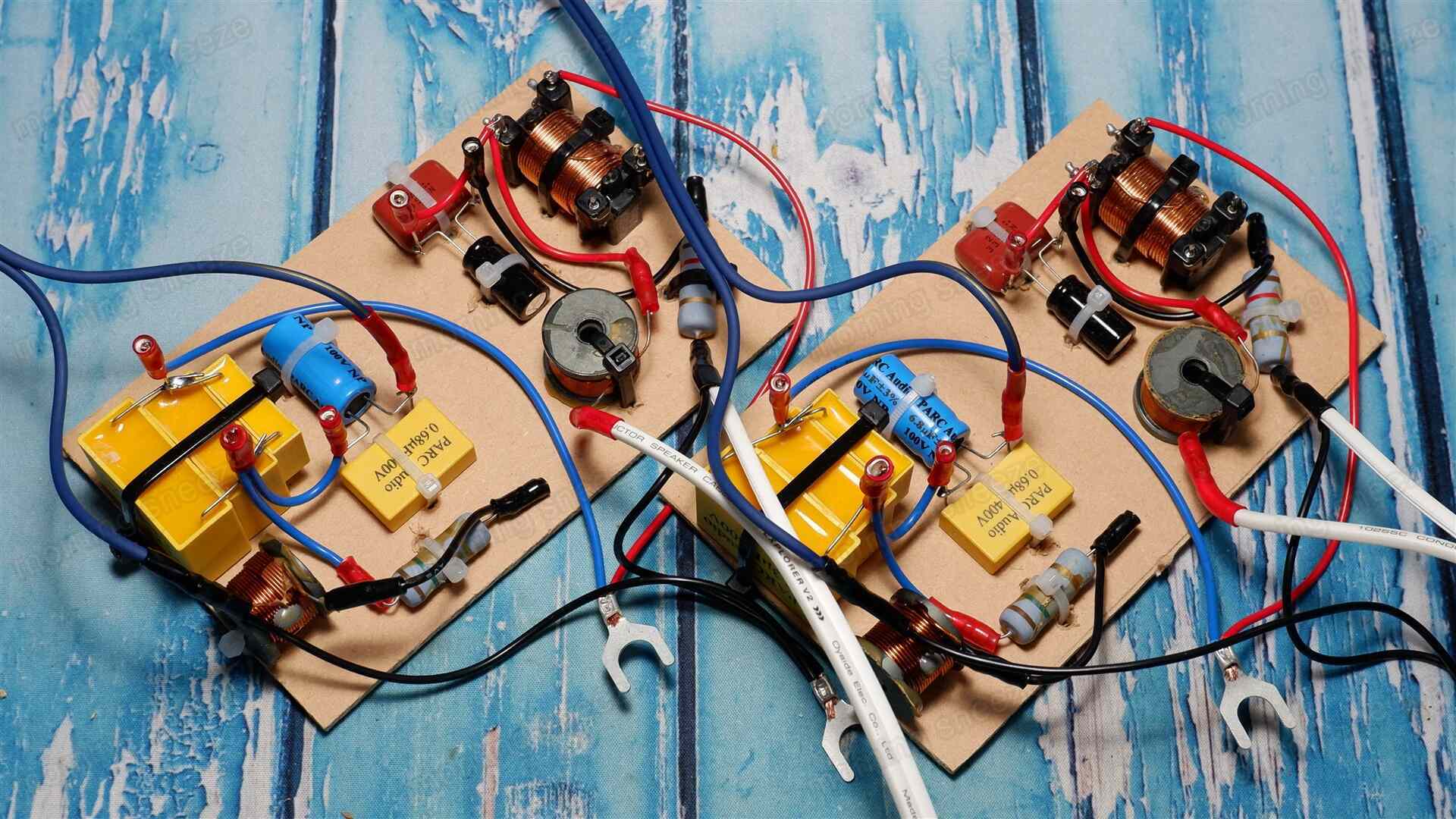 ディバイディングネットワークの構成材は、基本的に弄らないつもりでいた。しかし、コンデンサーの容量が、一応規定数値内ではあるものの誤差がそれなりにあり、それが基本的に狂いの小さいフィルムコンデンサーにも見受けられたため、新たに組み直すことにする。
