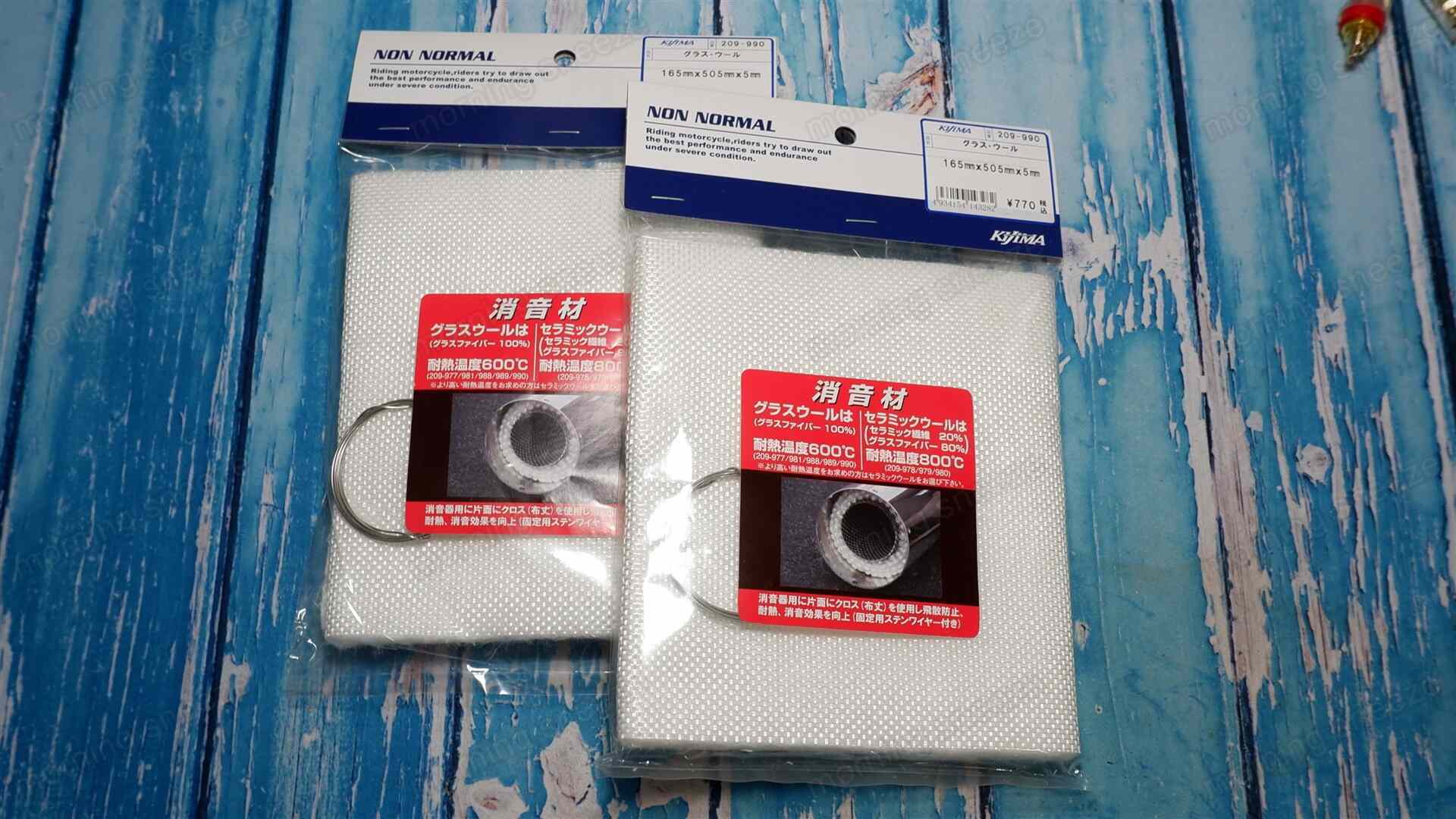 本来は車やバイクのマフラーの消音材を想定している製品。これは繊維がある程度編み込まれてシート状になっているため、筐体の内壁に接着する場合は都合が良さそうだと思い入手してみた。