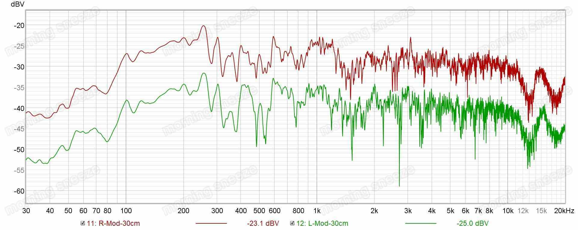 たいていは低音域以外の稜線はほぼ重なってくるはず。こういうこともあるのか。どういった原理なんだろうか。