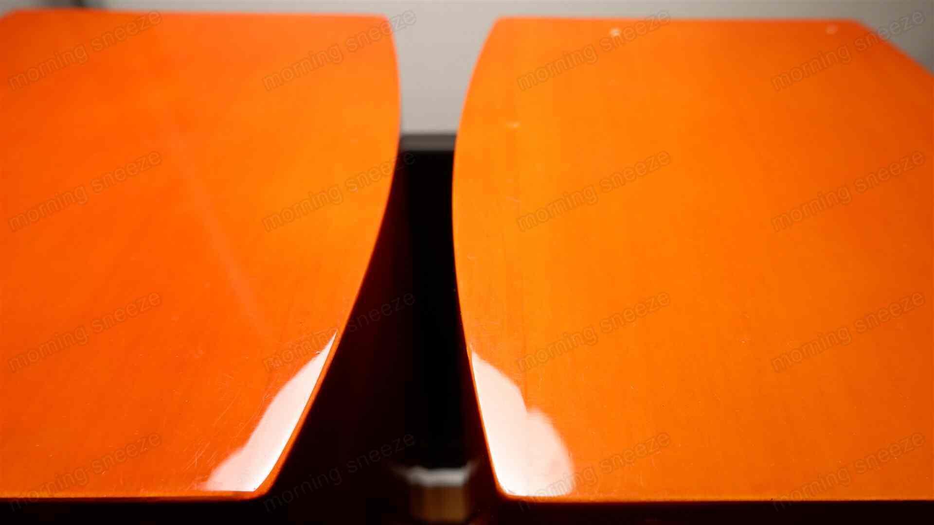 両サイドの板材は、前後方向に湾曲している。音の回折による影響を抑えるものらしい。