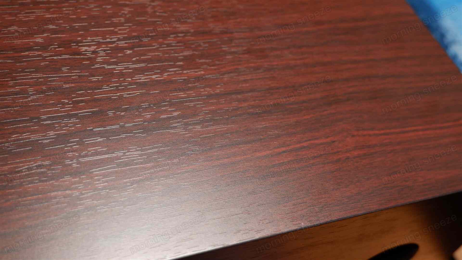 エンクロージャーの仕上げは、木目調のビニールシート。今回入手したカラーは"ウォルナット"で、やや赤みがかったブラウンの色調となっている。