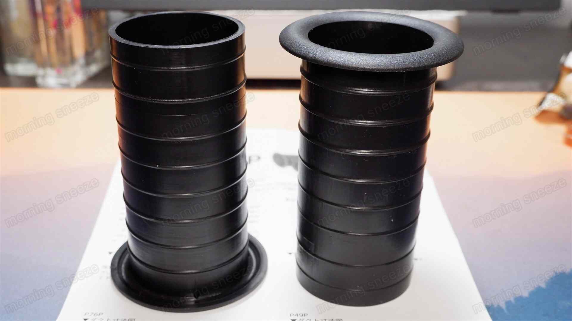 現代のスピーカーでもたまに見かける、背面の板材に紙製のチューブを直差しする方法で構築するバスレフダクトを、樹脂製のものに交換してみる。同じ形状でも材質の違いによって音がどの程度異なるのか確認しておきたい。