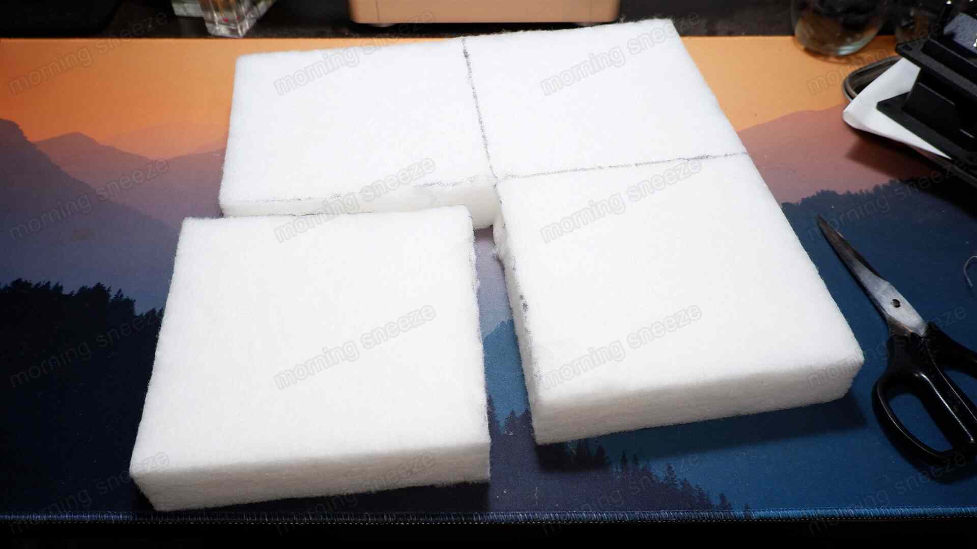 新たに「固綿シート」を用意。15cm角に切り出して、両サイドに貼る。
