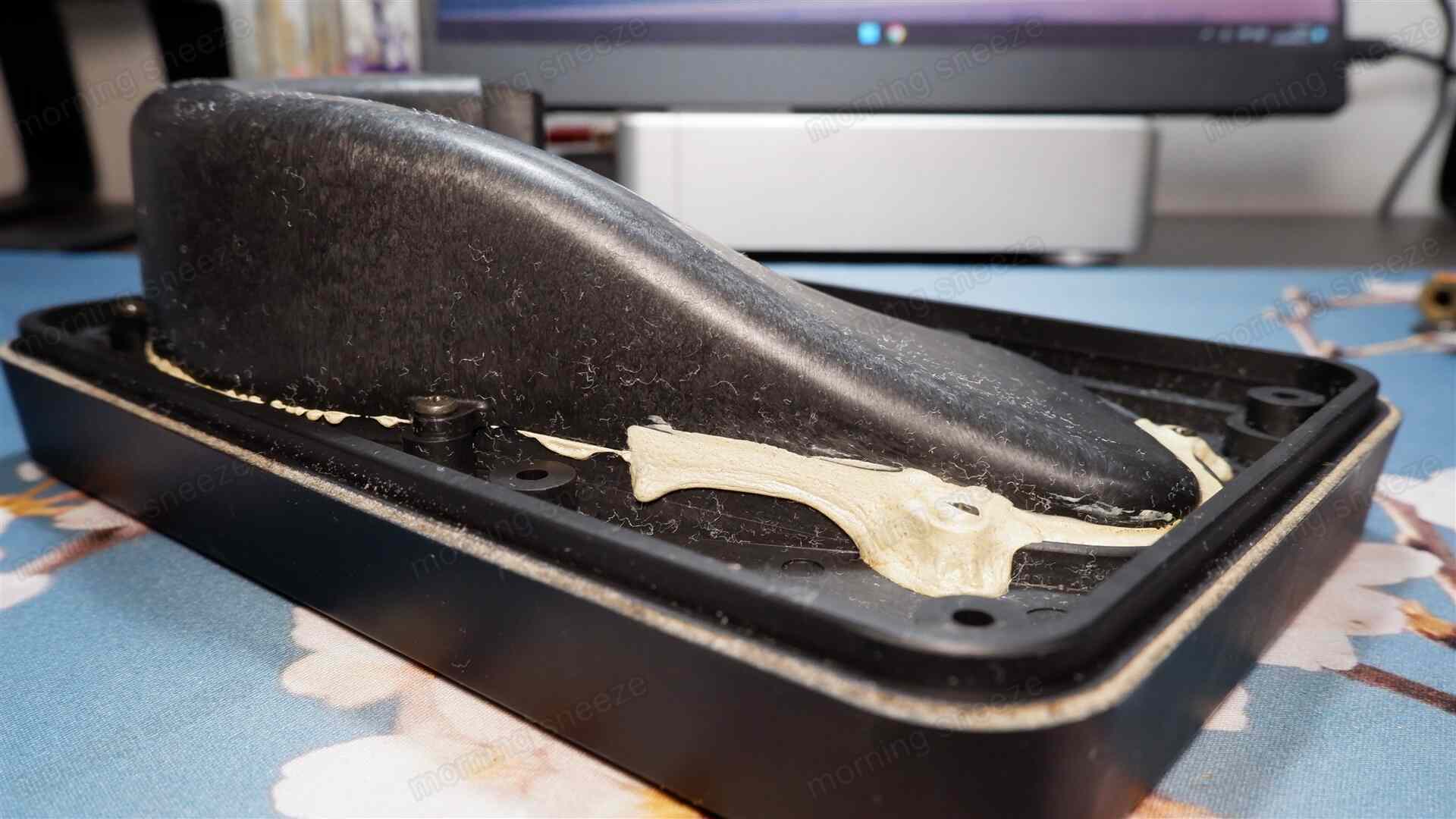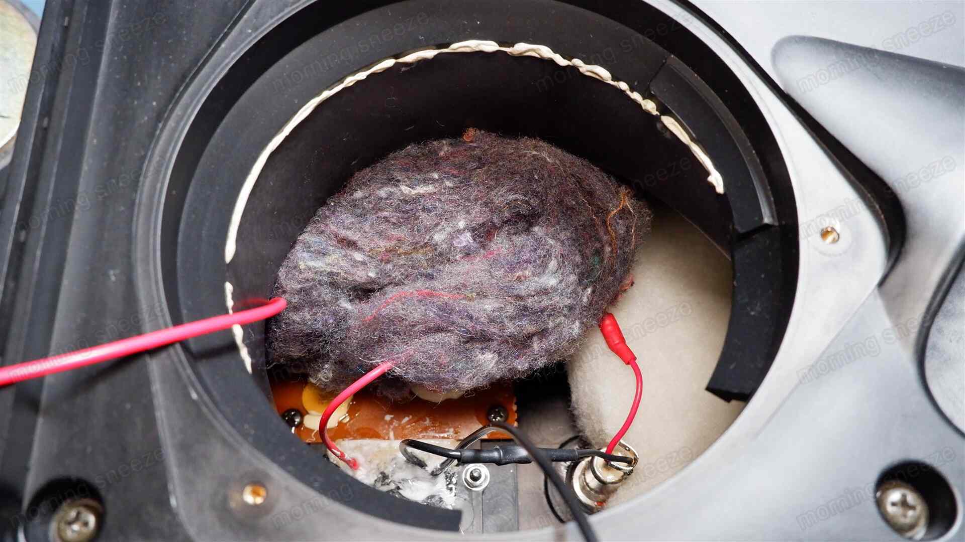 ドライバーを元に戻す前に、ケーブルのタッチノイズを低減するための柔らかめのニードルフェルトを少量詰めておく。