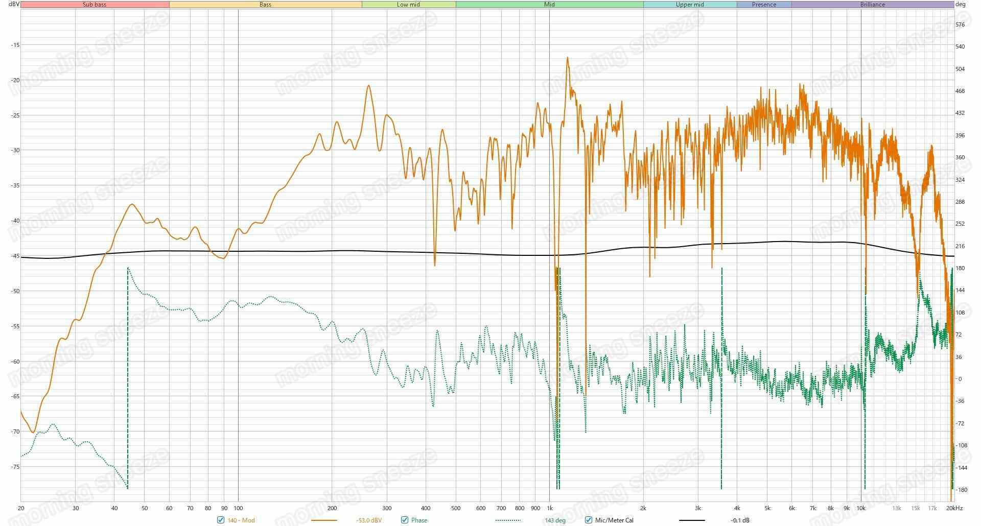 また、おそらくこの機種もイコライジング用のパッシブフィルターを噛ましているはずだけど、乱高下している稜線を見るにあまり効いていないような気もする。