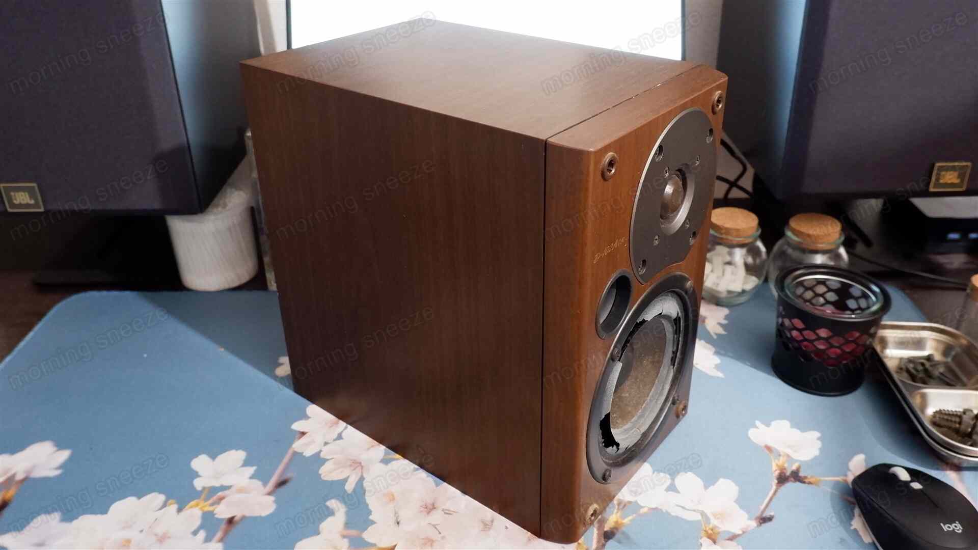 高音は、伸びは良いもののやや軽い感じがある。もう少しニュアンスを引き立てる輪郭が欲しい。ソフトドームらしい音といえばそうだけど、これが後年のモデルに搭載されるリング型ツイーターの開発に繋がるのかな、という妄想も膨らむ。