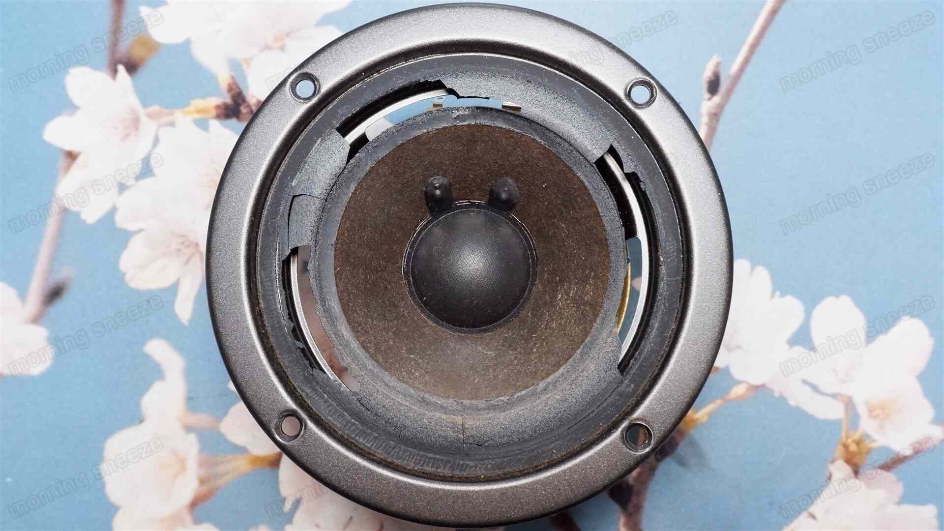 ツイーターは、前面プレートとメンブレンの接合部以外に接着剤をほぼ使用されておらず、分離はネジを外すだけで容易に行える。