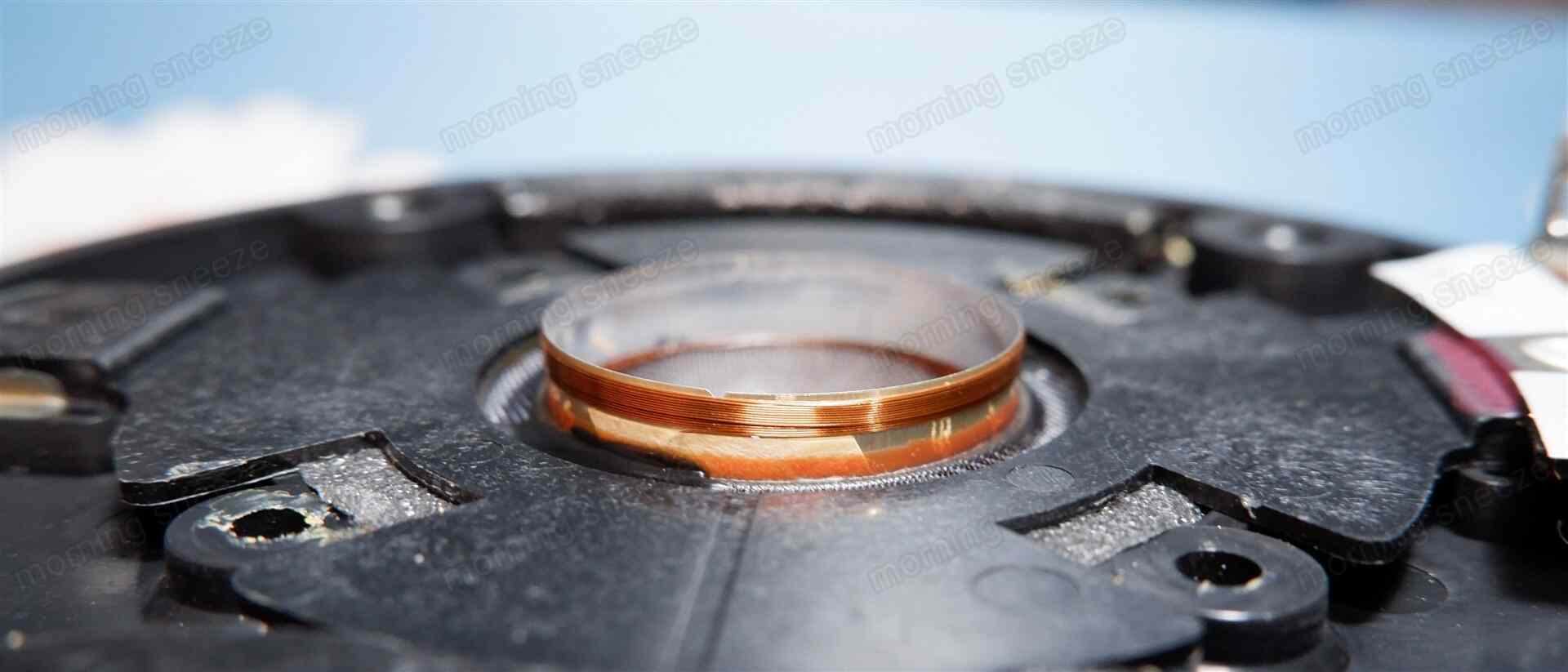 ドームの内側、センターポール部には窪みがあり、内側にグラスウールが少量詰められている。ギャップに磁性流体は使われていない。
