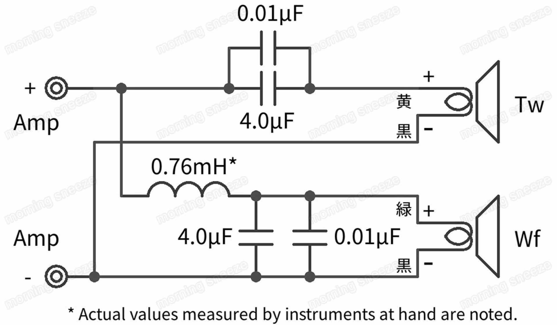 フィルター回路は、ツイーター由来のひずみを軽減したいので、それを中心に構成する。また、2kHzの軽いディップもなんとかできないか試してみる。