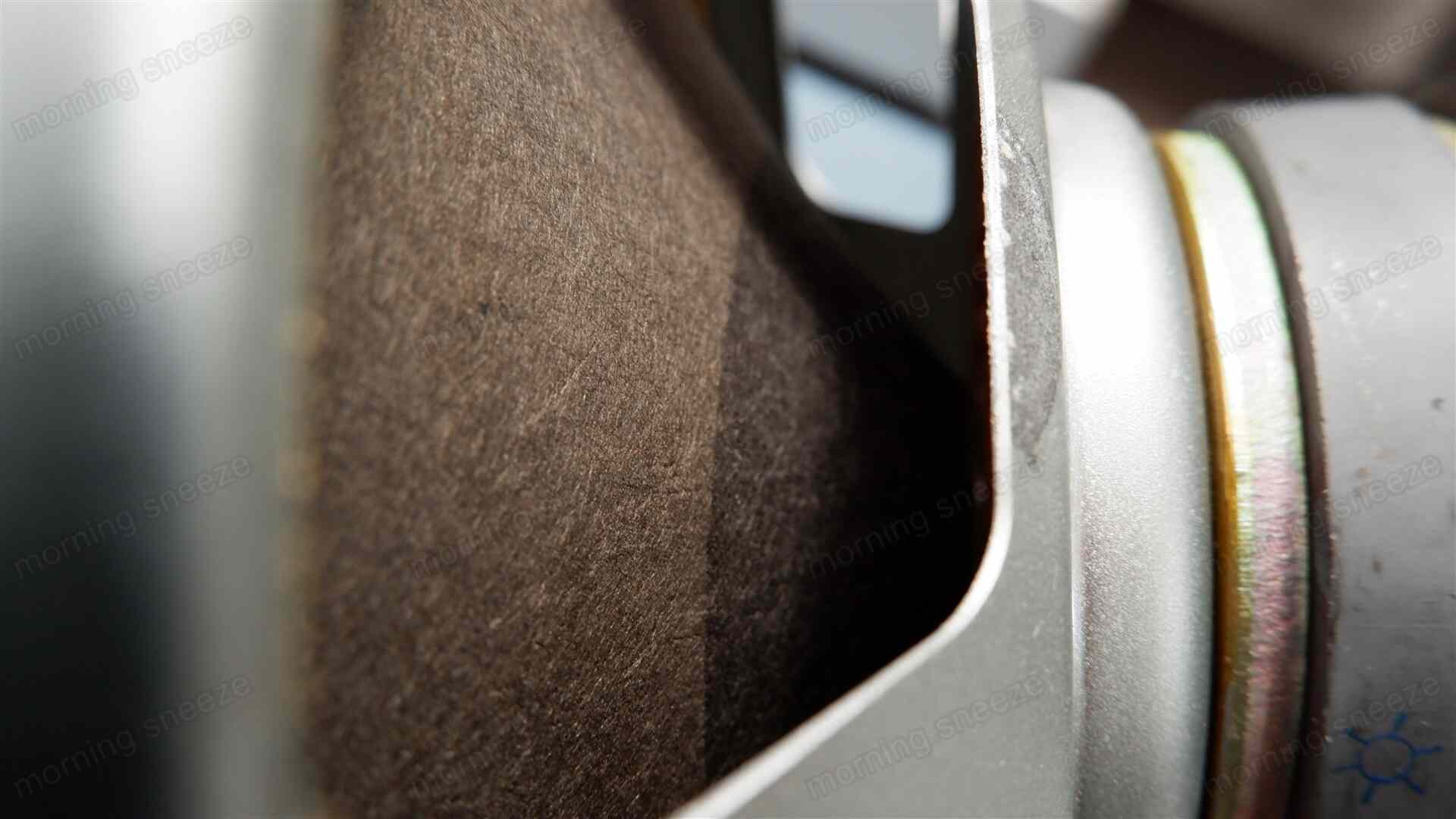 センターキャップが貼られている周辺の振動板は、色味が濃くなっている。