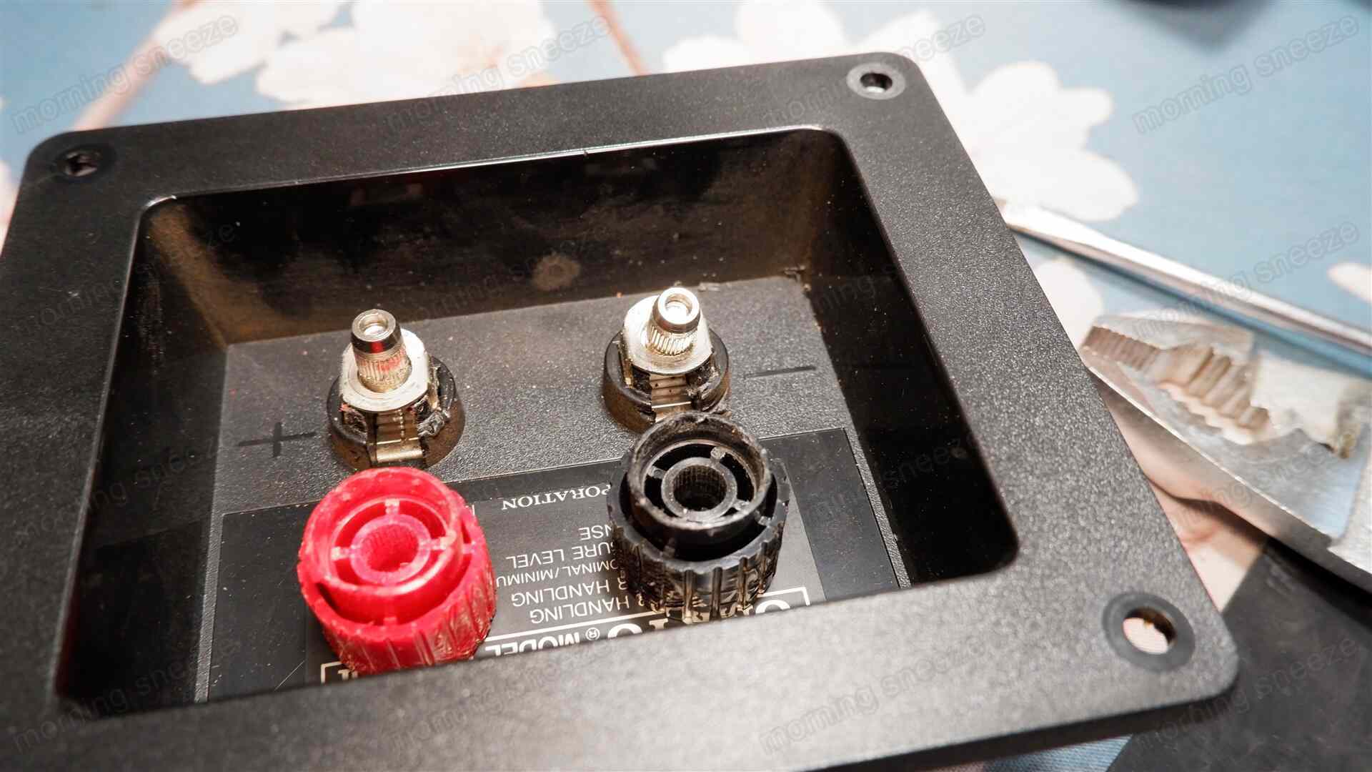 よって、ここは既存のユニットを加工して新しいバインディングポストを取り付けられるようにしてしまうのが結果として早く済み、見栄えの違和感も小さいことだろう、という心積もりだ。