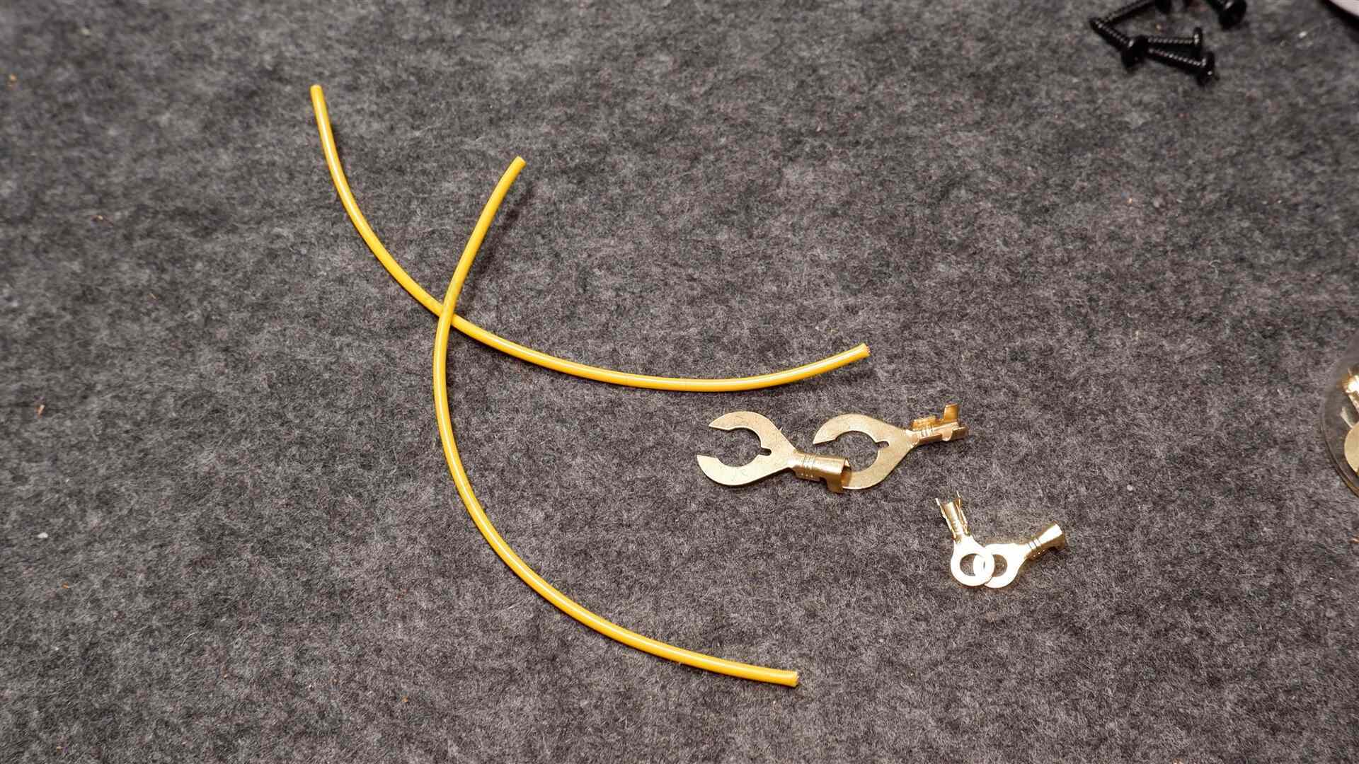 今回はこれをスピーカー内部に括りつけてからアッテネーター用のケーブルを接続する必要があるため、その作業ができる位置にタブを用意しなければならない点に注意。