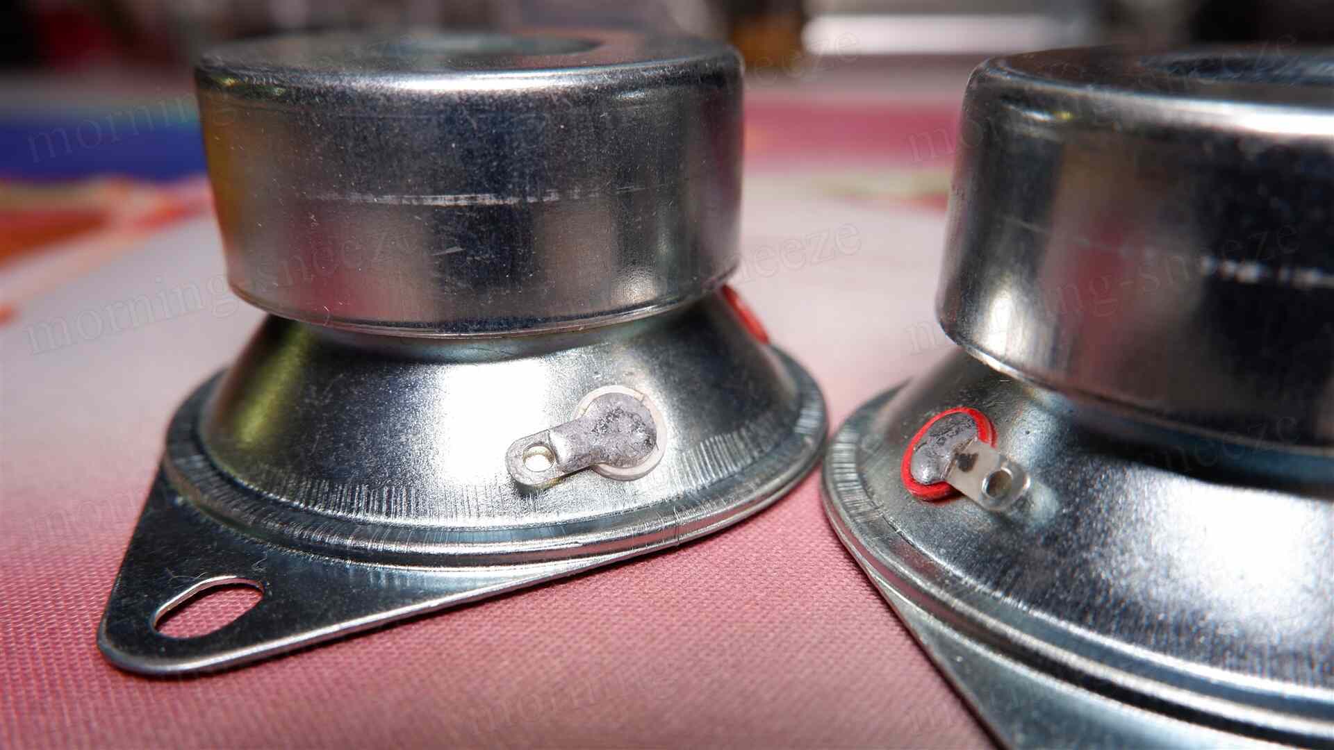 購入したリペア用の新しいツイーターも、オリジナルと同じ紙製コーンに銀色のキャップ。