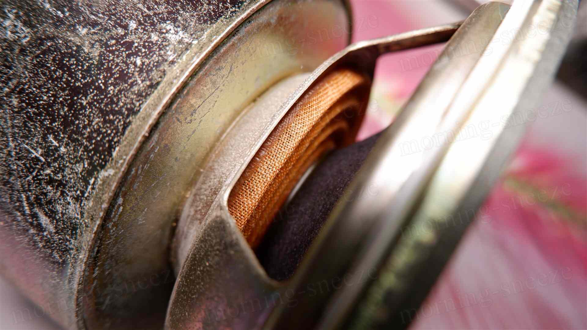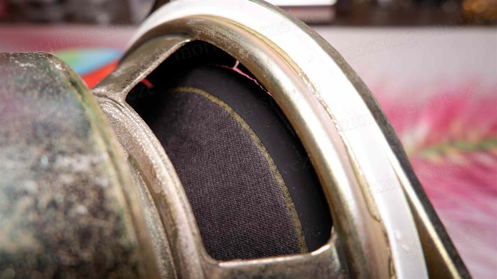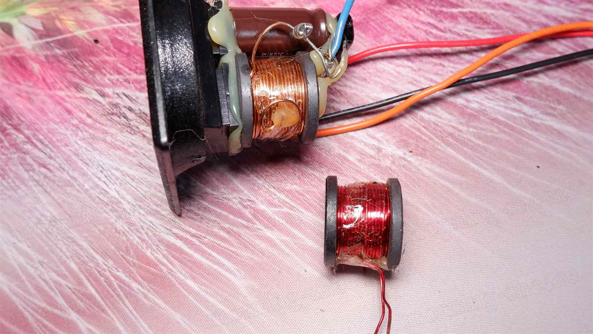 先に見たツイーターの振動板は、湿気でやられたのか脆くなっていて、破けたところから力無くボロボロと解れていく。