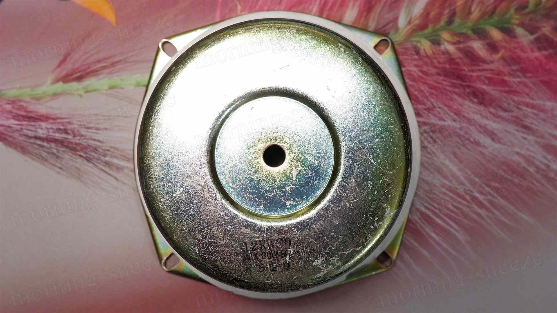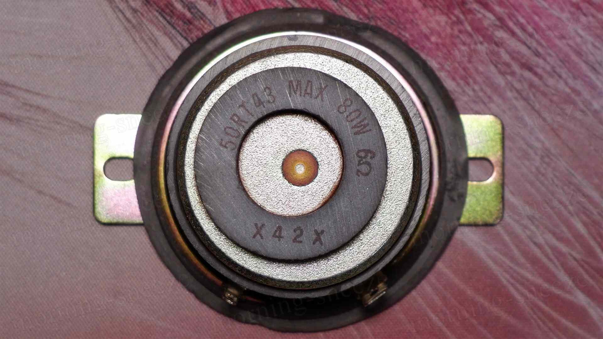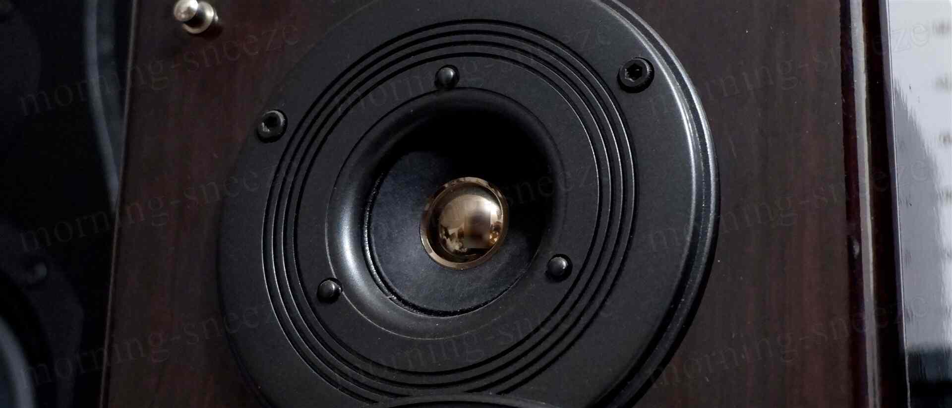 キャンセルマグネットが大幅にズレて接着されているツイーターユニットは、まあ、昨今のコンシューマー向けのスピーカーシステムでは見かけることがないであろう安いヤツ。特筆することもない。