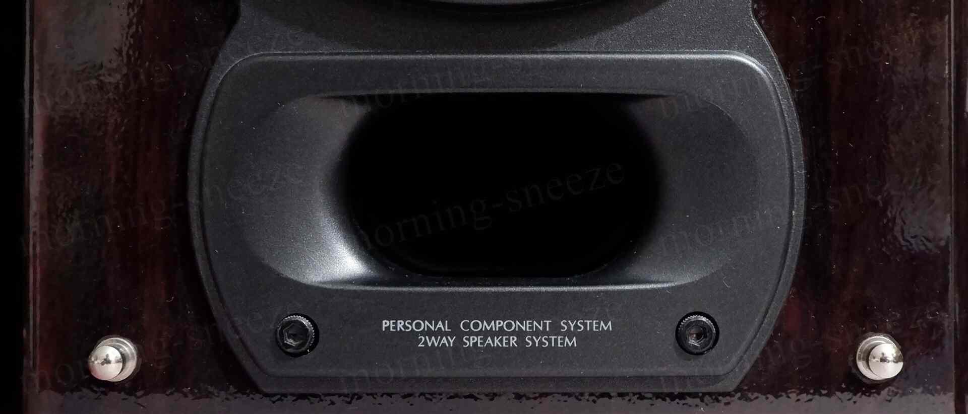 資料が手元にいっさい無いのでインターネットにお尋ねすると、このスピーカーは1992年発売の「D-101」というコンポのスピーカー部であることがわかる。当時の国内オーディオメーカーがこぞって発表していた、セパレートタイプのいわゆる高級コンポの一類に含まれる。