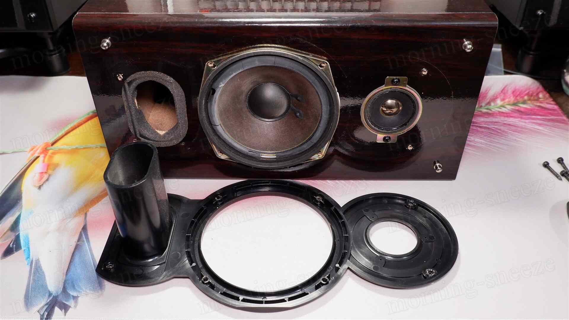 このままではリスニングができないので、さっさとミッドバスドライバーを取り外して、サラウンドを張り替えてしまいたい。