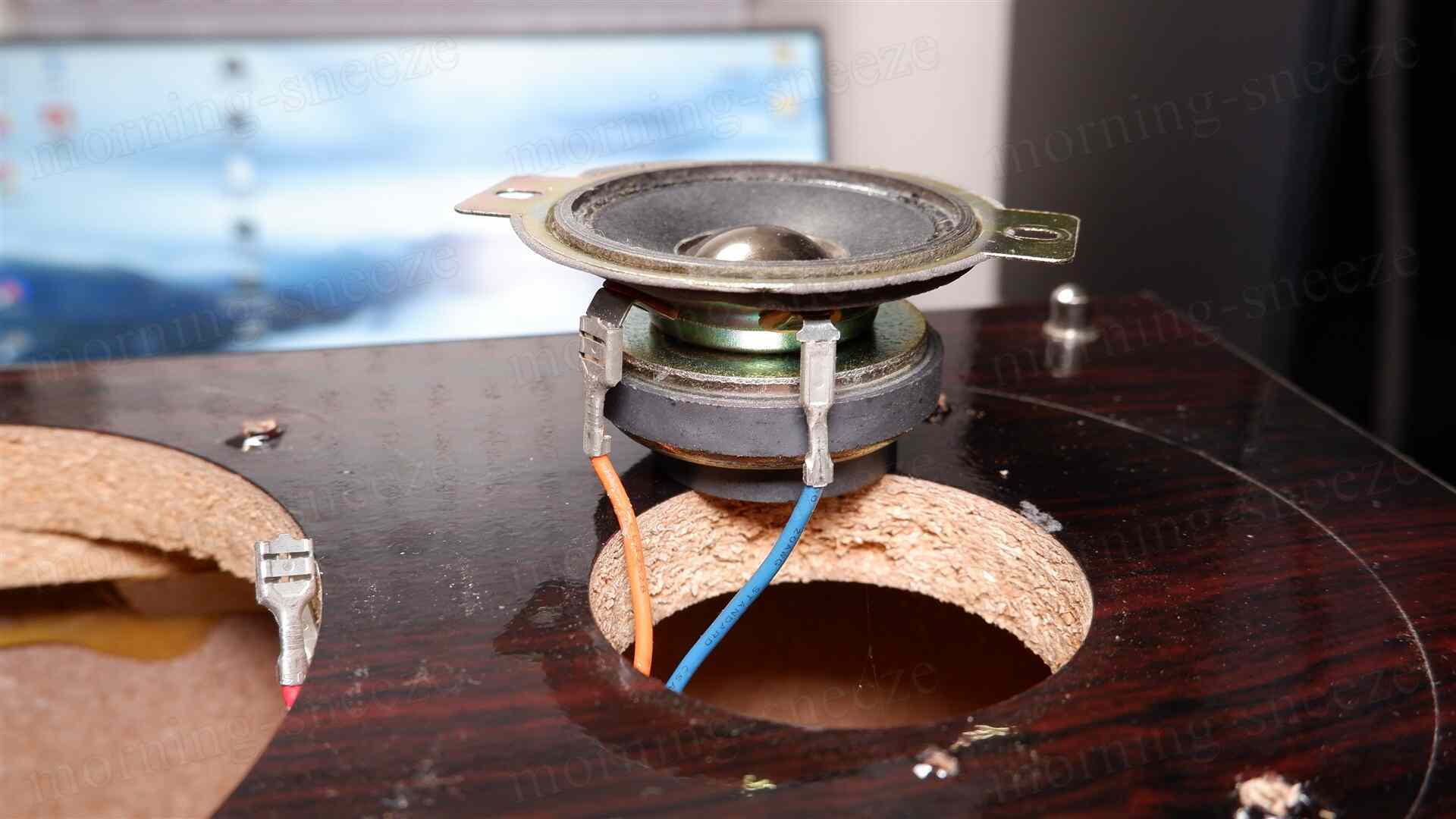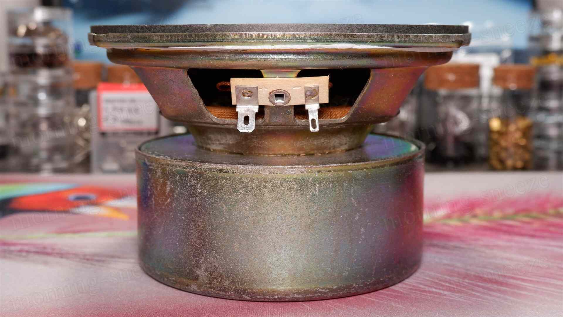 ツイーターに関しては、リペア用の振動板一式を探して購入するよりも、同じような形状の既製品を買ったほうが圧倒的に早いし安い。また、ここは2インチ相当のユニットで、しかも前面が化粧用プレートで隠れる都合、あえて小型のフルレンジドライバーに換装してグレードアップを図ってみても意匠の違和が無いだろう。
