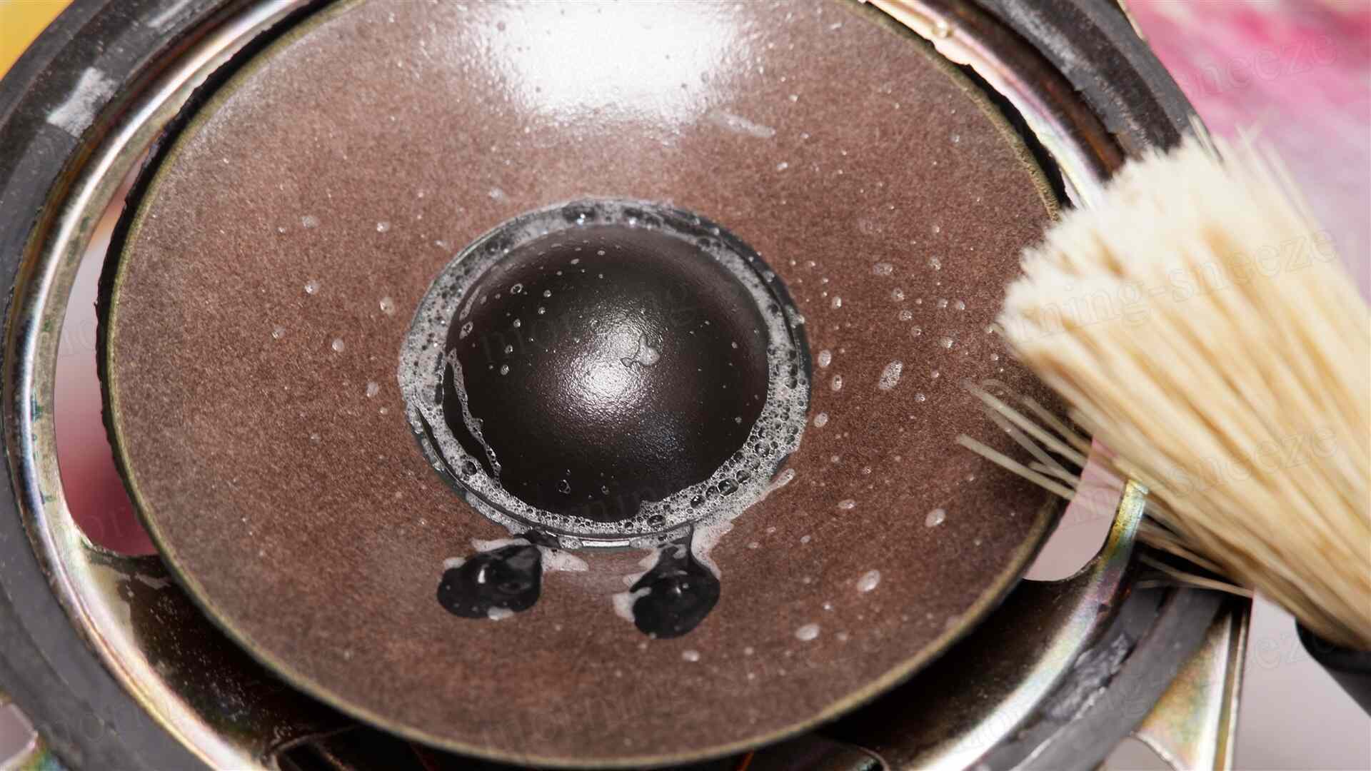 この段階で、ミッドバスのコーンをある程度洗浄しておく。