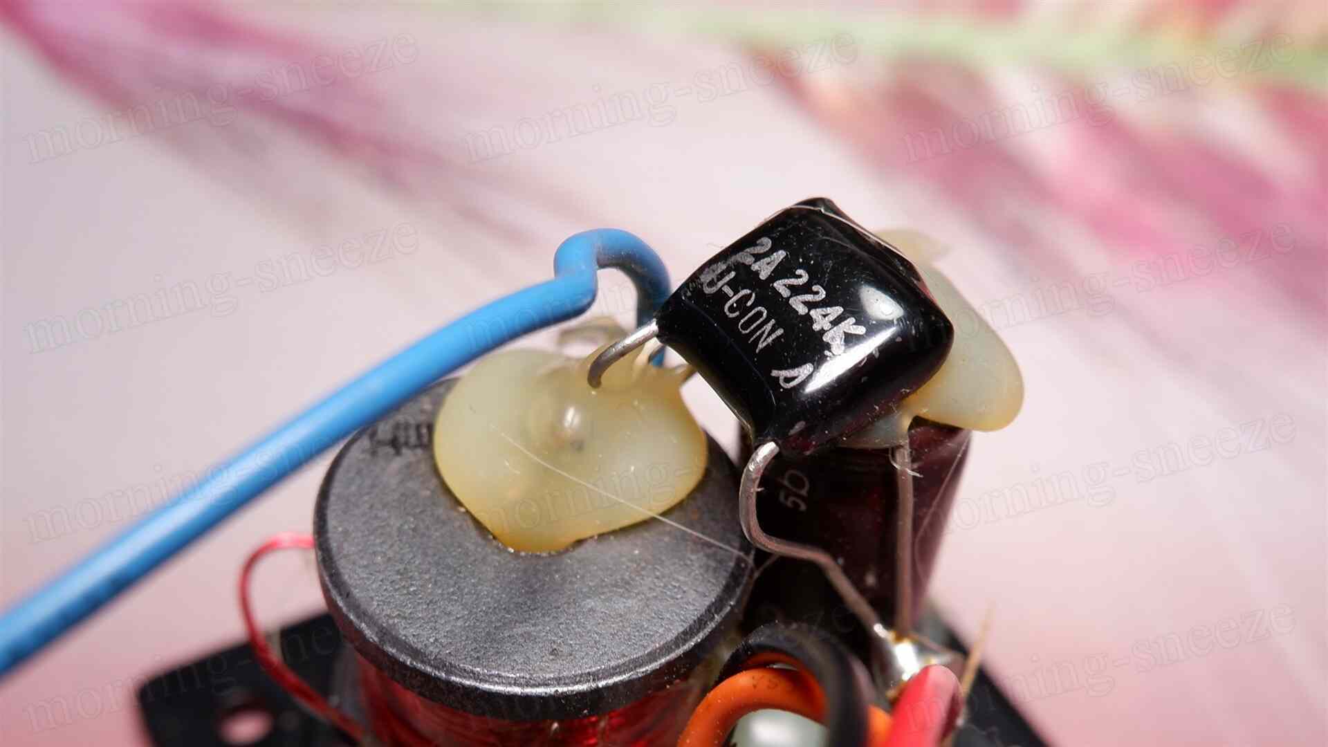 それに対して、ディバイディングネットワークのHPFに使われているのは、オーディオ向けの高級電解コンデンサー「AXF」という、妙にアンバランスな取り合わせ。