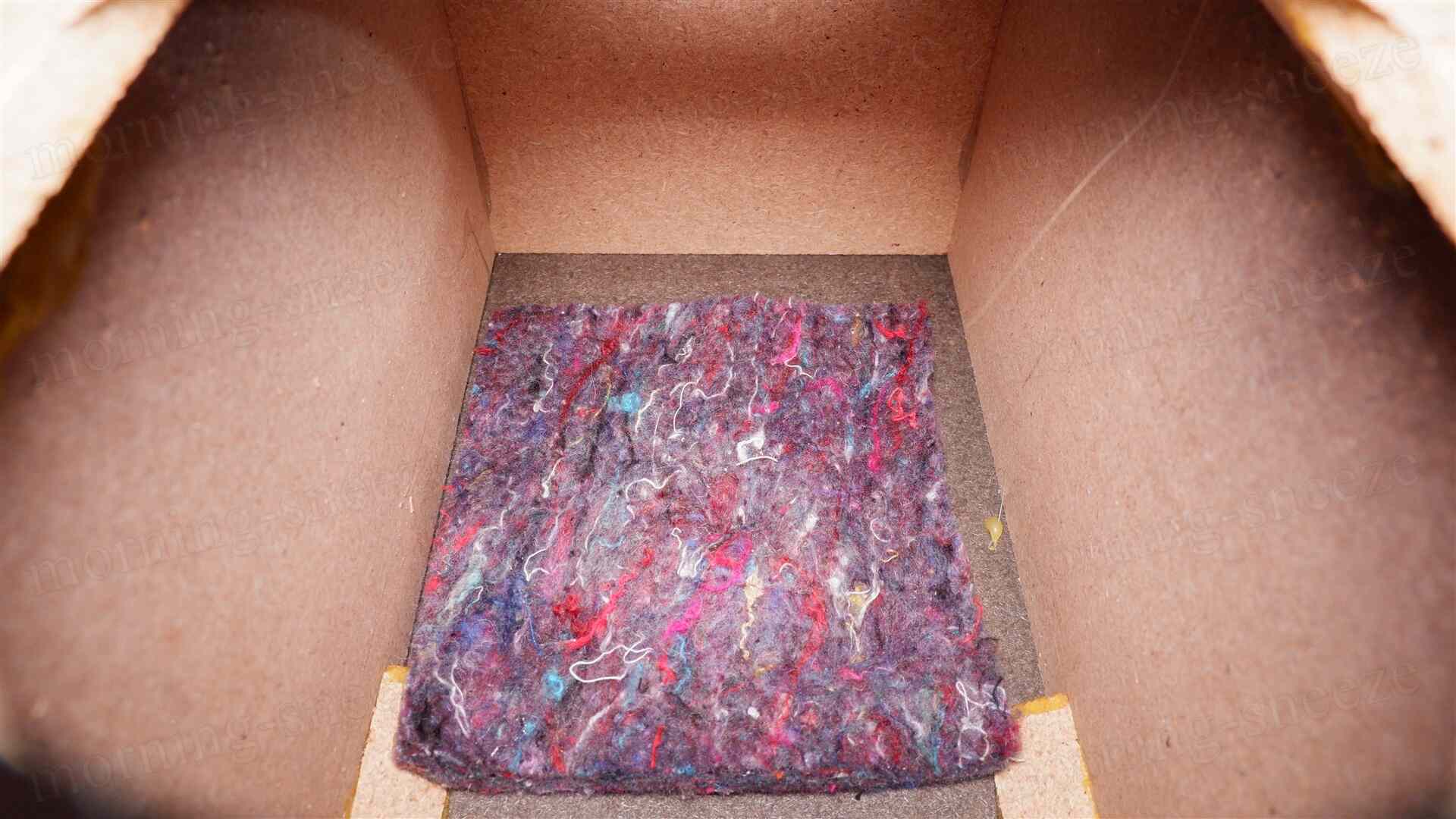 吸音材は、背面上部にニードルフェルトを貼りつけているのみ。