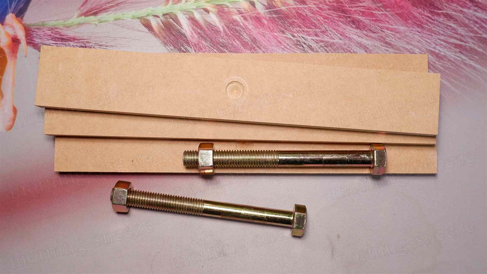 細長く切り出したMDFとボルトを用意。