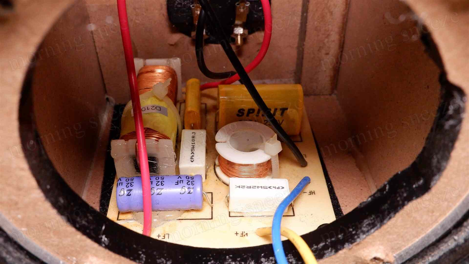 また、並列の32μFという大きいコンデンサーは、そのままだと高めの中音をガッツリとカットしてクロスオーバー付近の音が抜けてしまうように思えるけれど、再生音の特性上はそうなっていないところからして、これがメーカーの手腕であり妙技ともいえるものだろう。